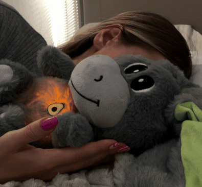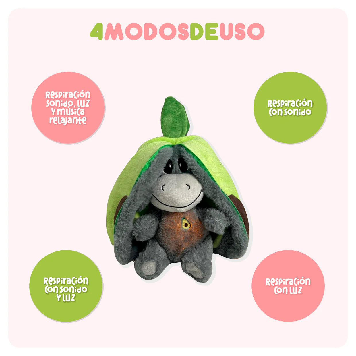 Este peluche mágico te ofrece cuatro modos para adaptarse a tu estado de ánimo: luz, música y movimiento para relajarte; respiración, luz y movimiento para calmarte; respiración y movimiento para descansar sin distracciones, o solo luz y movimiento para un ambiente suave.